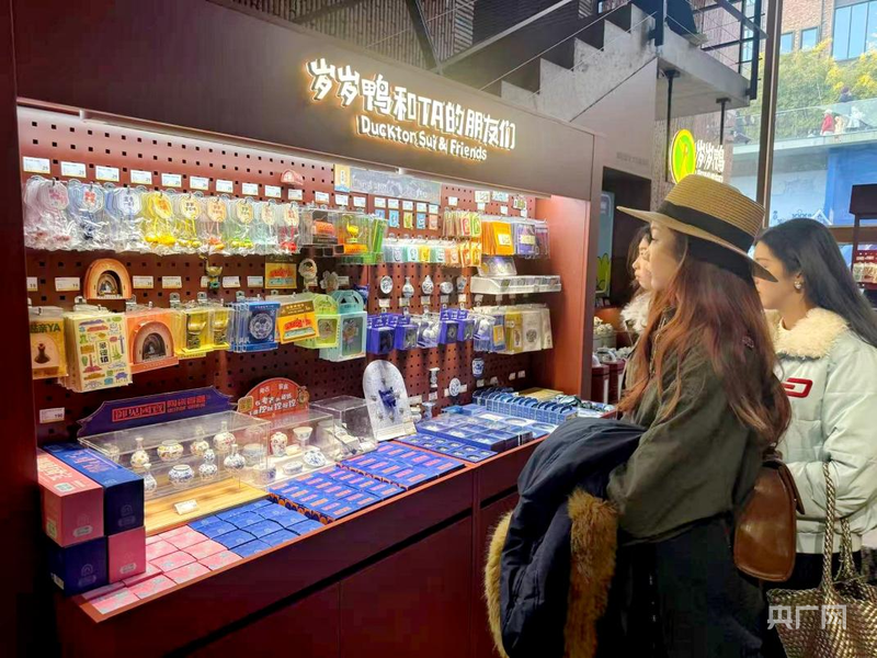 游客正在选购“岁岁鸭”相关文创产品(央广网记者胡斐摄)