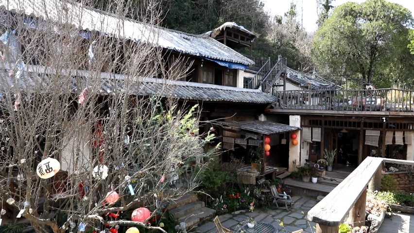 初春的午后,走进宁静古朴的凤阳邑有风小院,风铃声声声入耳。小院里, 游客们打卡“许红豆”同款的惬意慢生活。