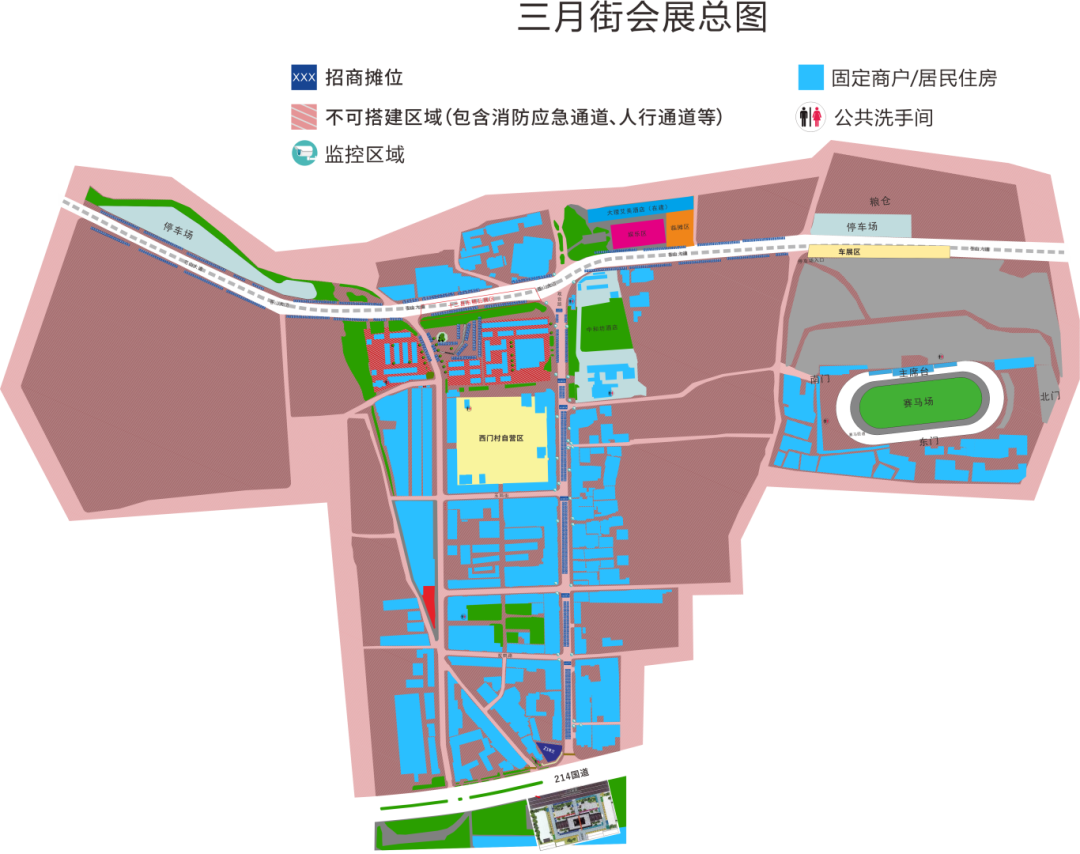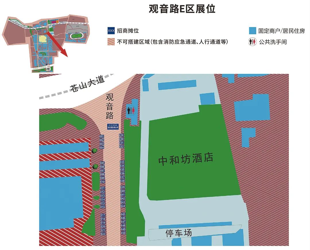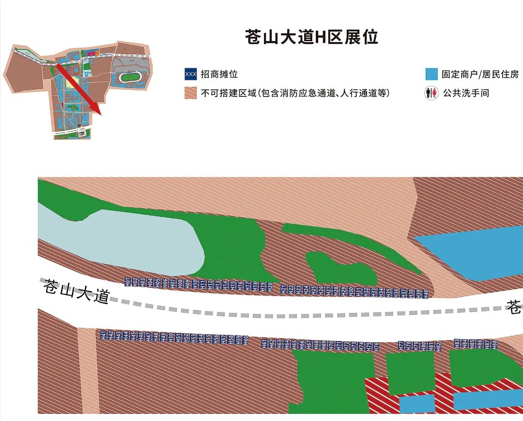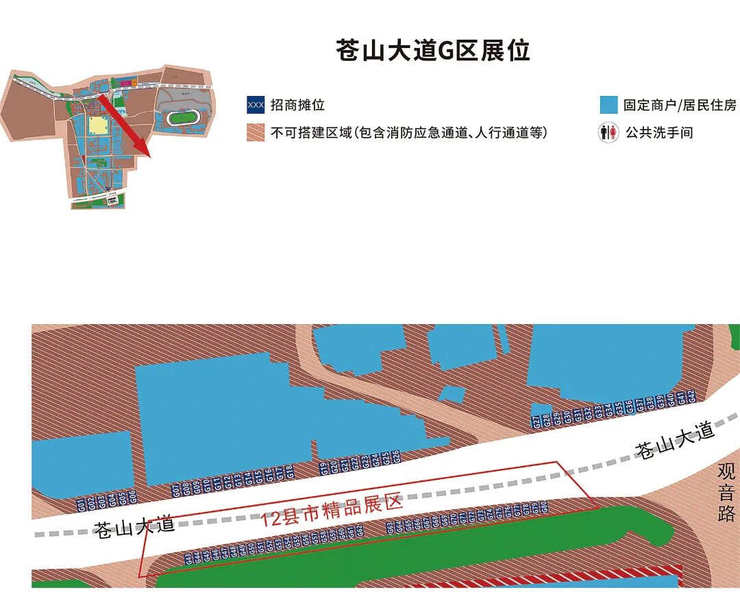 一、摊位布展区域位于大理市大理镇“三月街”街区,南至苍山大道“三月街”停车场红绿灯口,北至苍山大道双狮路交叉口,西至苍山大道,东至苍山门。对苍山门、观音路(A、B、C、D、E)、苍山大道(G、H、X、Y)、对歌台广场(F)、西门村自营区域和艾美酒店前方空置场地设置的临摊商贩摆摊专区进行集中管理(详见“三月街”会展总图及分区展位图)。