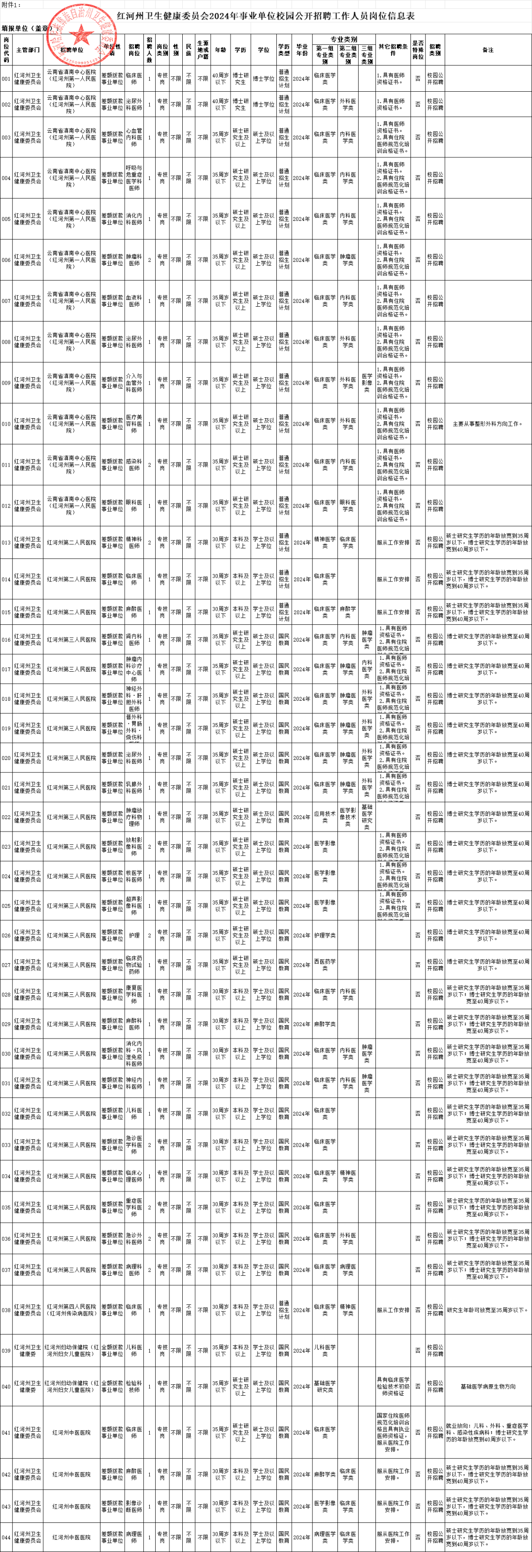 红河州卫生健康委员会2024年事业单位校园公开招聘公告