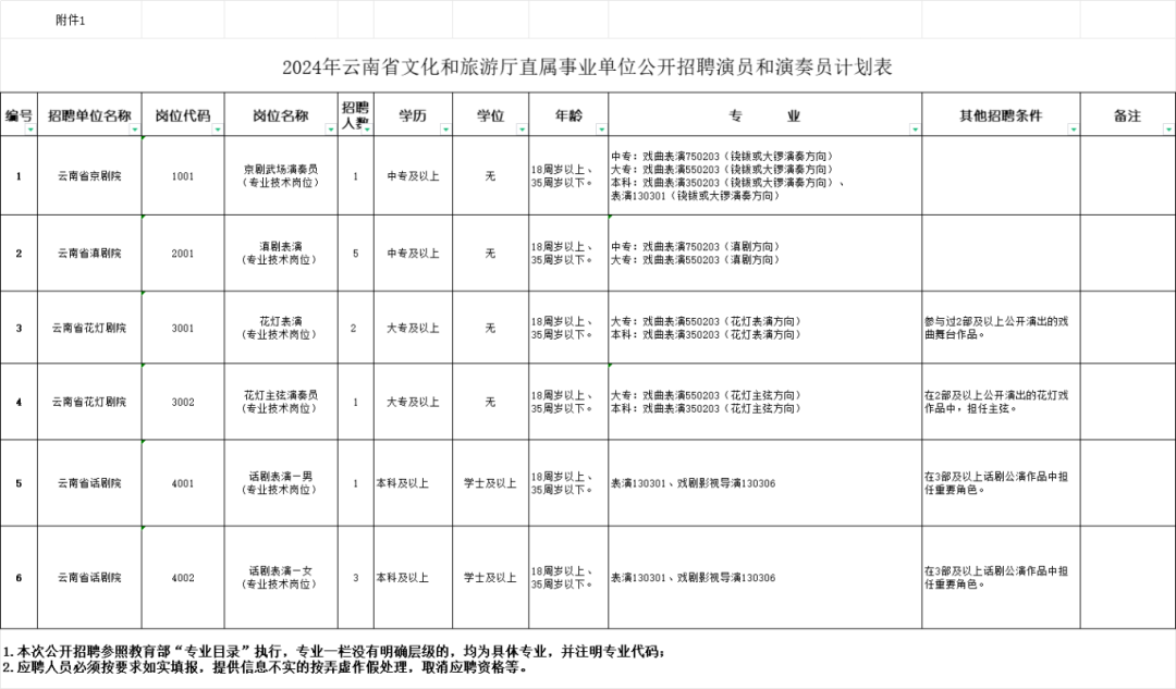 2024年云南省文化和旅游厅直属事业单位公开招聘演员和演奏员公告