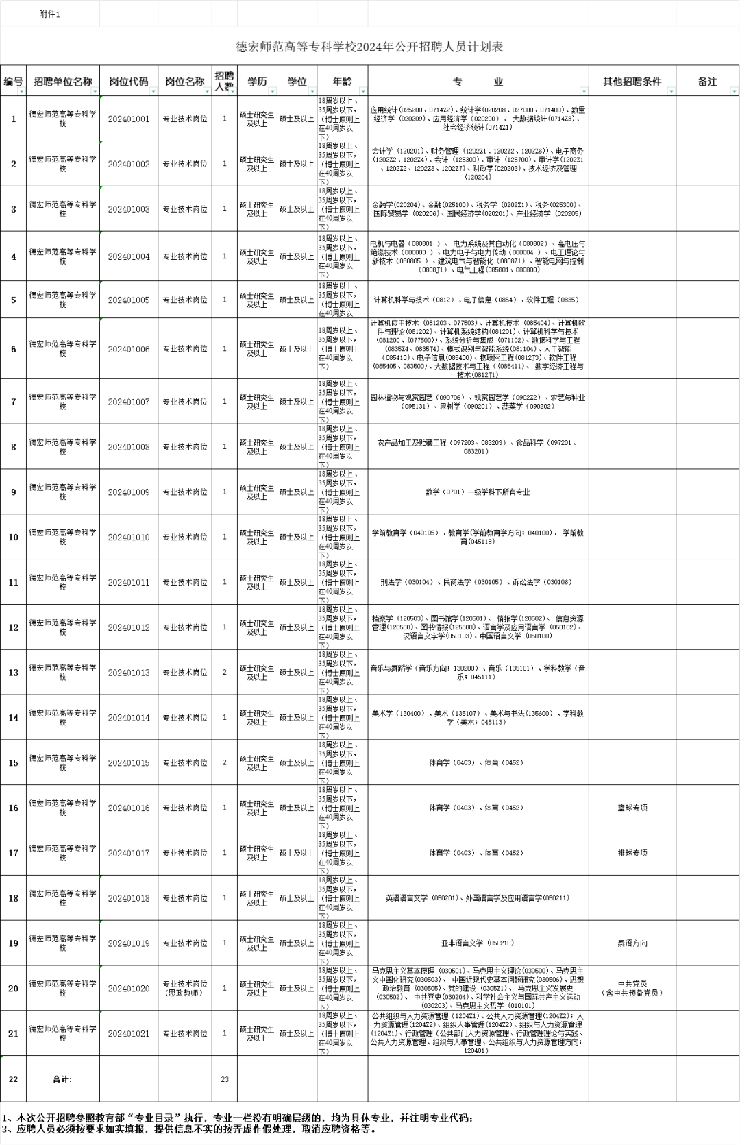 2024年德宏师范高等专科学校面向社会公开招聘人员23名。