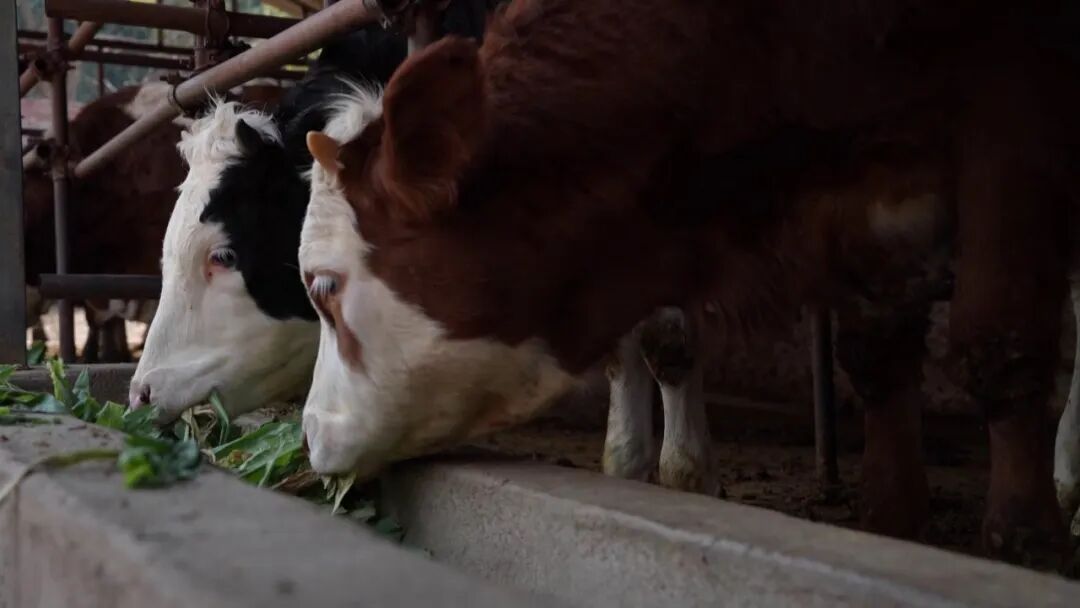 在漾濞县漾江镇桑不老村罗丽红家的圈舍里,一头头膘肥体壮的肉牛正津津有味地享受着“大餐”。看着埋头吃菜叶的牛,罗丽红脸上挂满了幸福的笑容。