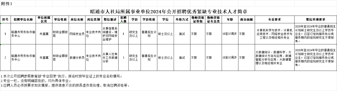 昭通市人社局所属事业单位2024年公开招聘优秀紧缺专业技术人才通告