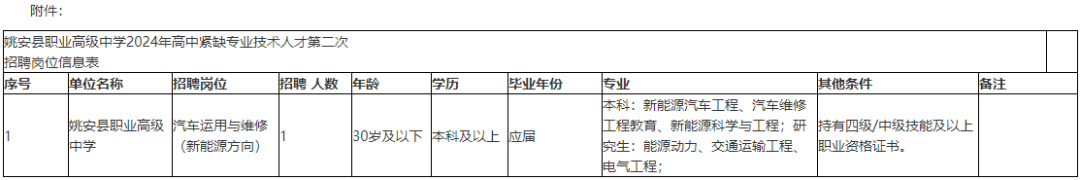 姚安县职业高级中学2024年第二次紧缺专业技术人才招聘公告
