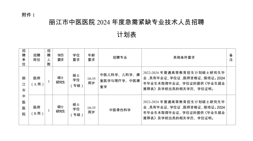 丽江市中医医院2024年度急需紧缺专业技术人员招聘公告