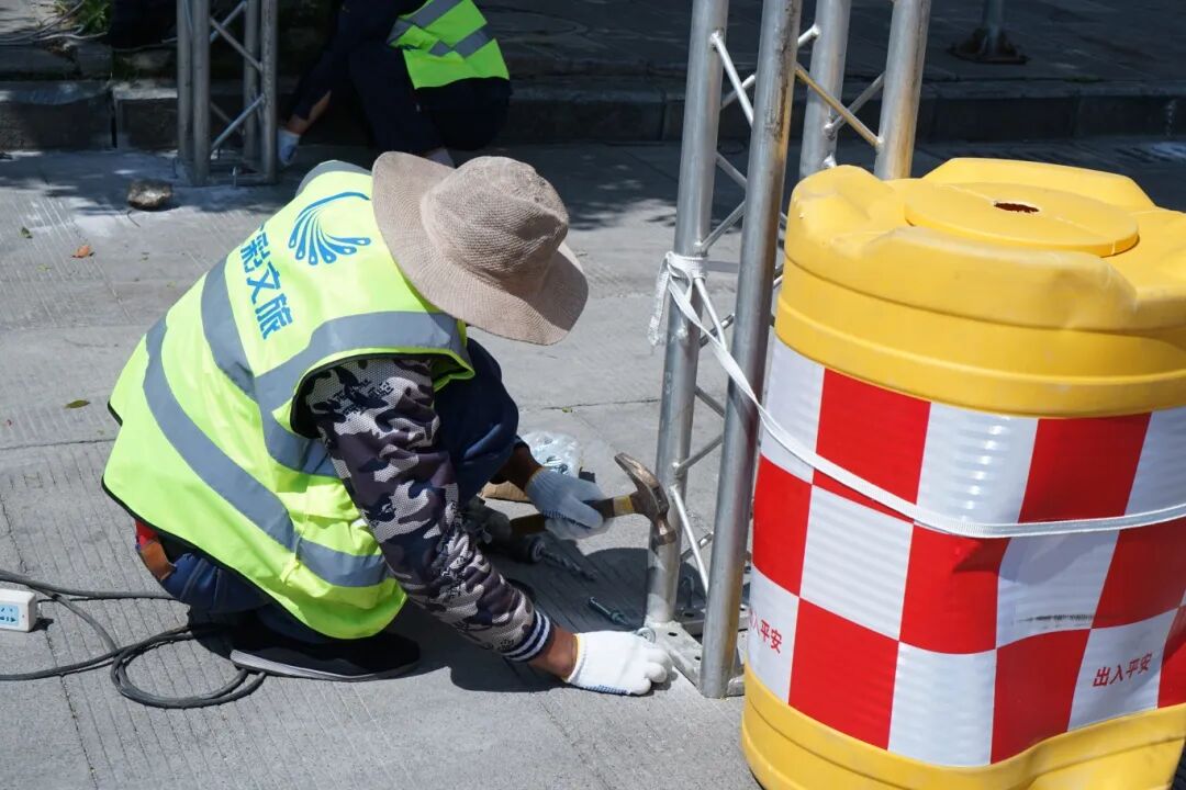今年三月街的铺面搭建采用了铝合金的桁架,还用膨胀螺丝在地面进行了加固,背景采用了网眼布,透风性更好,提升了摊位的扛风能力和扛拉能力,保障商户和游客的安全。主办方还将新架设三座变压器,保障三月街的电力供应。