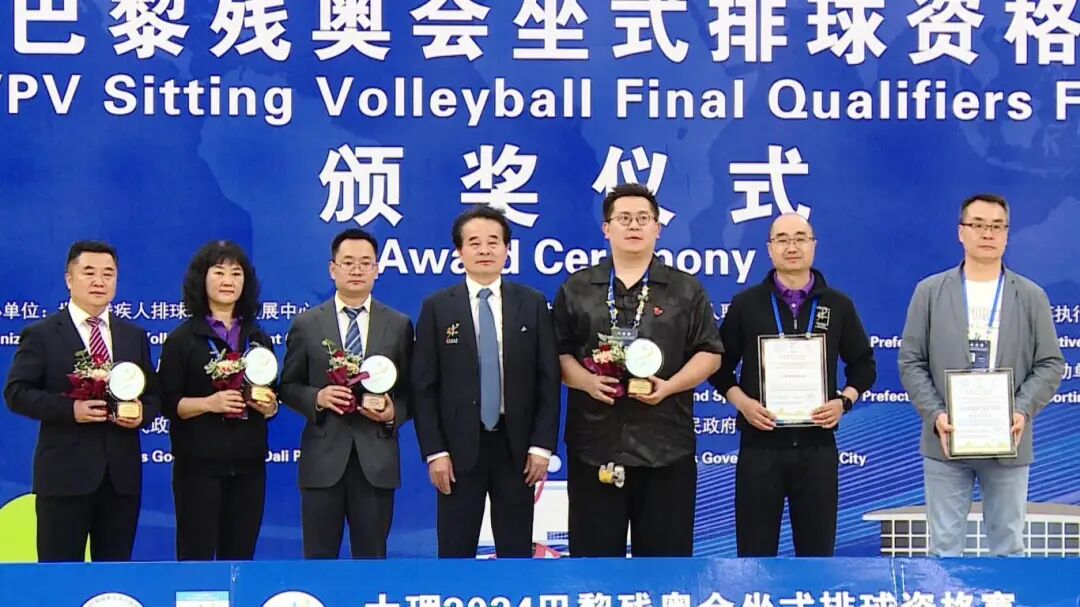 4月10日下午,大理 2024 巴黎残奥会坐式排球资格赛举行颁奖仪式,斯洛文尼亚女队和乌克兰男队分别获得女子组、男子组冠军。
