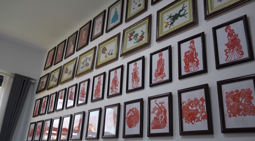 在漾濞县非物质文化遗产剪纸项目代表性传承人欧春荣的工作室里,花鸟、鱼虫、人物、生肖、节日等主题类的剪纸作品栩栩如生。