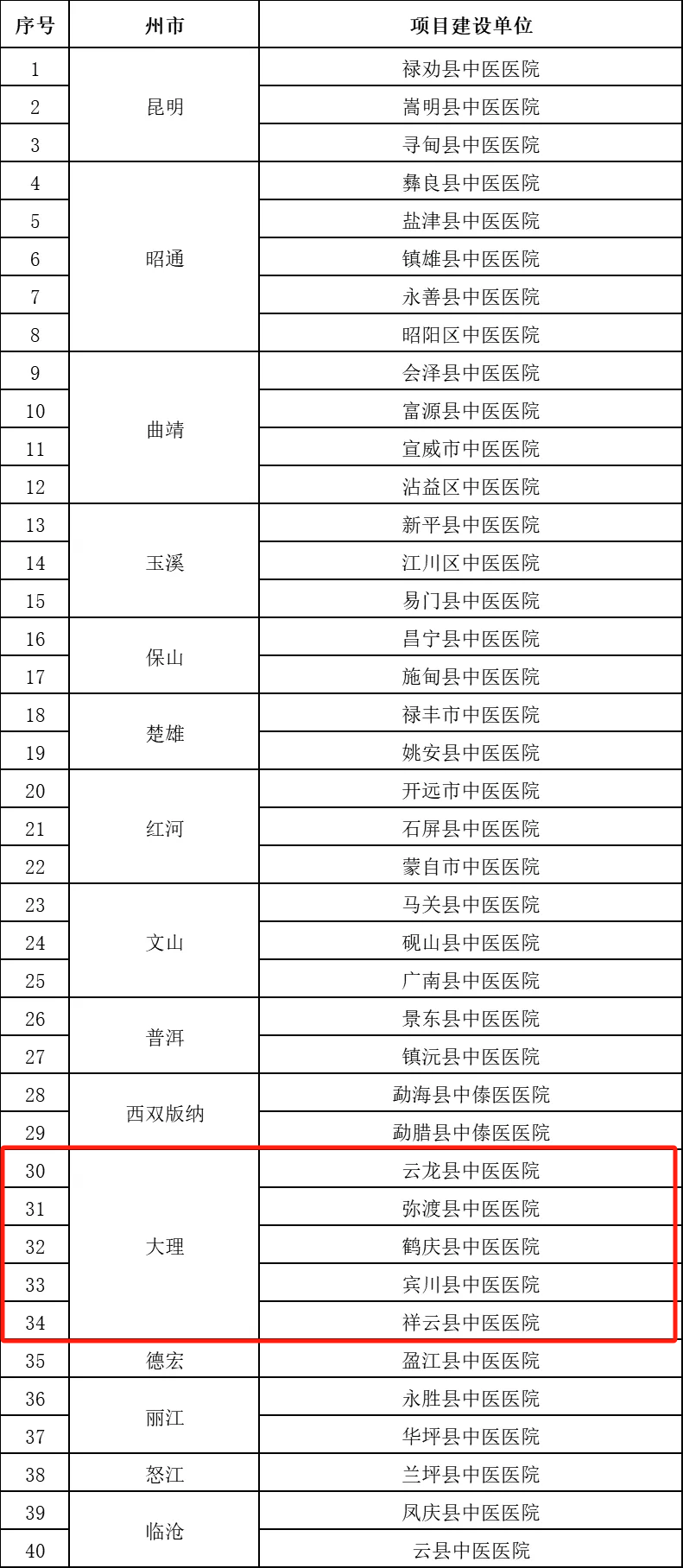 为实施好《云南省卫生健康事业高质量发展三年行动计划(2023—2025年)》“固支撑”工程,根据《中医医院应急救治能力提升项目实施方案》要求,经单位申报,各州(市)推荐和专家评审,云南省卫生健康委员会将2024年中医医院应急救治能力提升项目拟入选的50所中医医院(州市级10所、县级40所)名单予以公示。公示时间为2024年4月12日至4月18日。