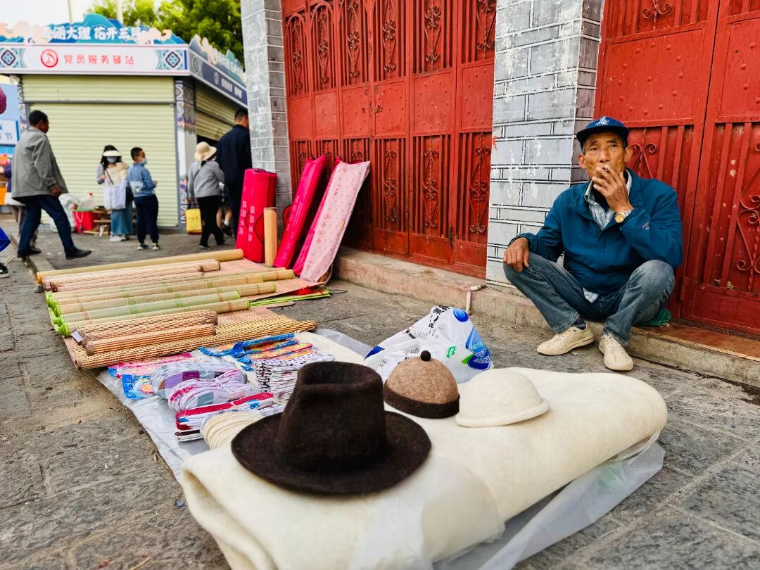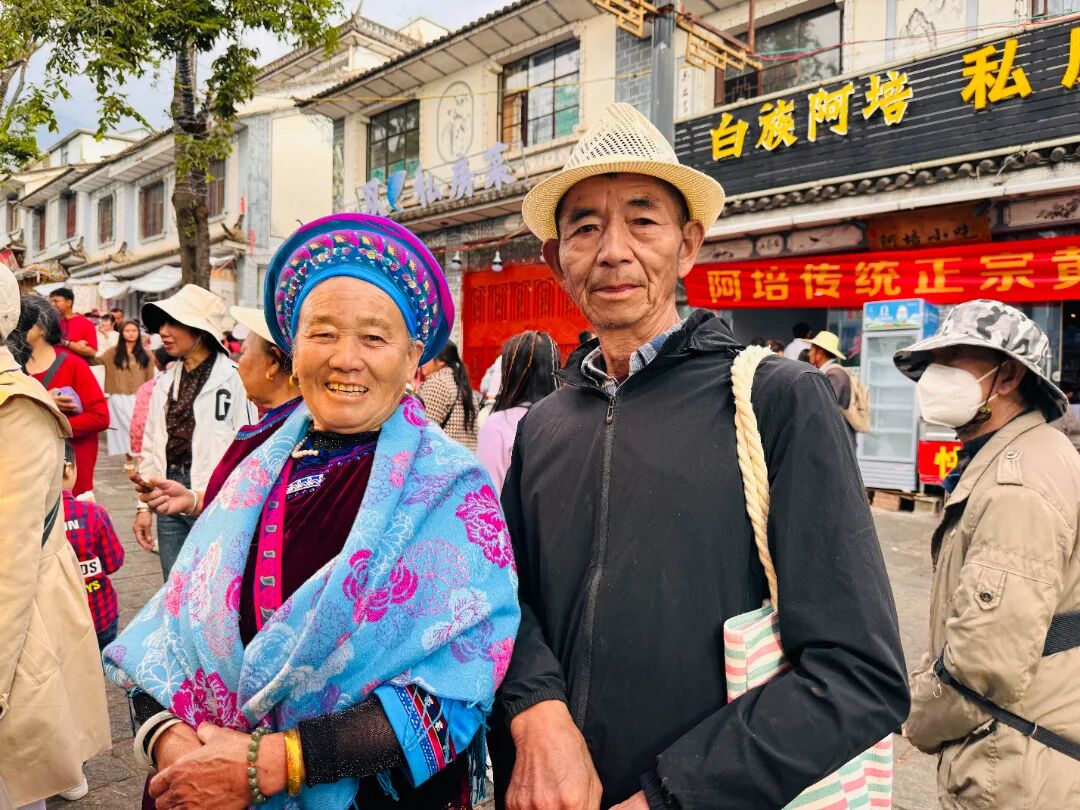 来自鹤庆县的杨兴真夫妇也是五六点便启程了,每年三月街他们都不缺席,虽然今年已经七十多岁,但两人身体还很硬朗,所以哪怕挤一点,也不愿错过。