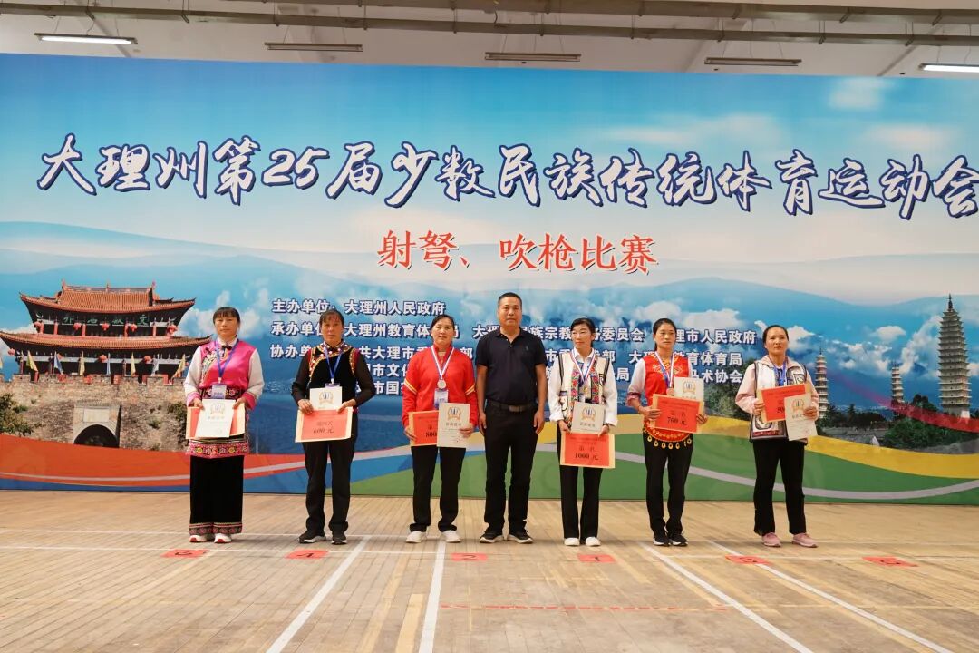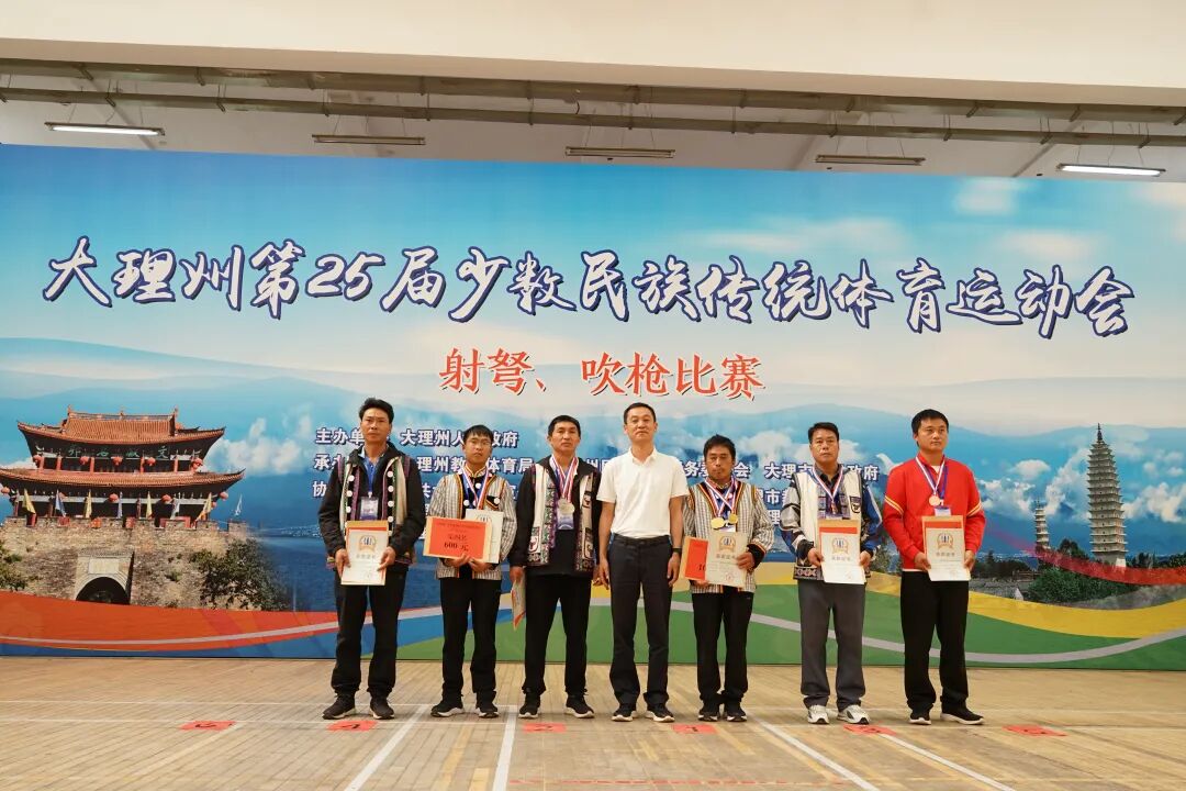 其中云龙县代表队施竹良斩获男子传统弩立姿、跪姿、男子全能三项金牌。永平县代表队施光莲斩获女子传统弩立姿金牌。永平县代表队羊新润斩获女子传统弩跪姿金牌。云龙县代表队杨润萍斩获女子全能金牌。