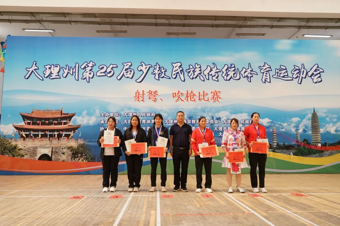 其中漾濞县代表队陶军美斩获女子吹枪跪姿、立姿双项金牌。漾濞县代表队祝奉品斩获男子吹枪跪姿、立姿双项金牌。