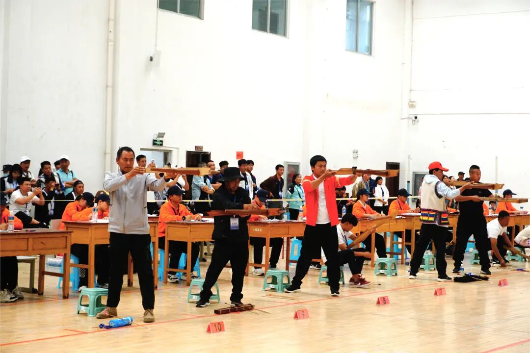 本次射弩项目设有男子传统弩立姿、女子传统弩立姿、女子传统弩跪姿、男子传统弩跪姿、女子全能、男子全能共6个小项(全能是射弩跪姿加立姿的总成绩)。