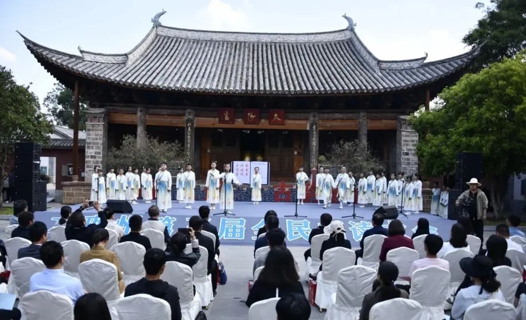 活动现场,群力小学学生诵读了《诗经之美》,阅读爱好者朱江民、何存芳分享了习近平总书记重要讲话节选《更好担负起新的文化使命》,大理大学马克思主义学院马明月教授分享习近平文化思想,巍山县纪委监委干部石莹分享了习近平著作选读《全面从严治党探索出依靠党的自我革命跳出历史周期率的成果路径》的阅读感悟,洱源县融媒体中心主持人番田生分享了《青山碧海与老人》,大理州融媒体中心主持人江南分享《从五个维度读懂习近平文化思想》,南诏镇日昇街社区干部杨艾、县文化和旅游局党组书记郭晓斌作了阅读分享。巍山民间艺术大师、彝族打歌省级传承人字汝民表演了《树叶传情》,为民小学学生展示了彝族打歌非遗进校园传承效果。