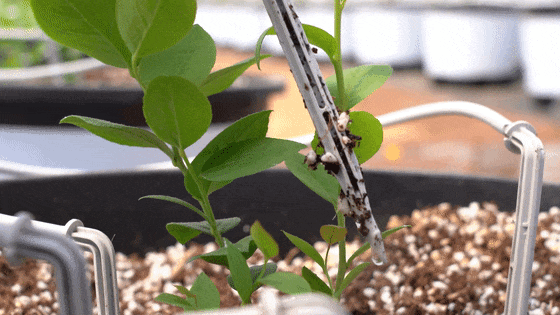 蓝莓的种植是用无土栽培模式,采用全自动温室大棚,水肥一体化,更好地来给苗木最好的营养状况,对苗木采取精确的水肥控制,不会有肥料污染或者是农药污染。