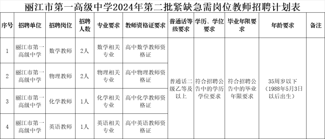 采取网络报名方式进行,每人限报一个岗位。如实填写《丽江市第一高级中学2024年紧缺急需岗位教师招聘报名表》。并将报名表、本人身份证、教师资格证、学历证书、学位证书、毕业生就业推荐表、普通话等级证书等所有材料扫描后编辑为一份PDF文件发送至报名指定邮箱(文件命名:姓名+联系电话+报考岗位)。邮箱:175379758@qq.com。