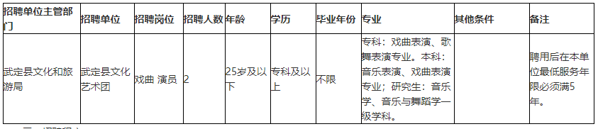 (1)现场报名:报名考生携带身份证、毕业证原件及复印件1份,近期彩色正面免冠照2张,并填写《武定县文化和旅游局2024年公开招聘戏曲演员报名表》(须粘贴小一寸彩色近期免冠照)、《武定县文化和旅游局2024年公开招聘戏曲演员考生诚信承诺书》,到武定县文化和旅游局(罗婺路1号4楼413室)现场报名。
