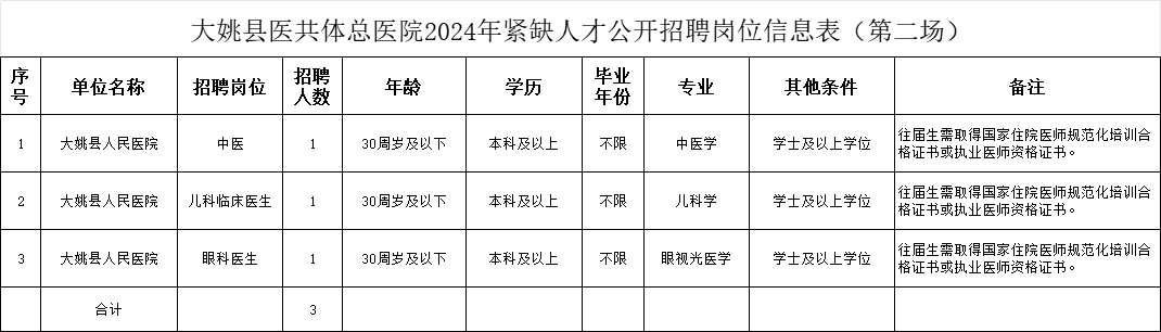 到大姚县医共体总医院人力资源绩效管理中心(大姚县人民医院医技综合楼五楼人事科)现场报名。