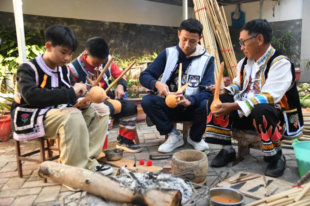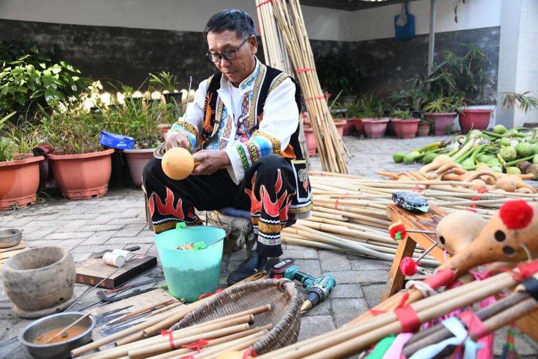 巍山是中国彝族打歌之乡,芦笙是一种深受彝族群众喜爱的多孔吹奏乐器,音调古朴、悠扬,彝家人通过芦笙吹奏,借乐器来言情志事,传达明确的语义,祈求风调雨顺、五谷丰登,同时也是彝家打歌场上必不可少的伴奏乐器。