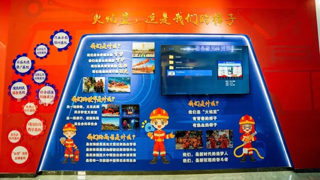 展示区以红、蓝为主色调,红色代表火,蓝色代表消防救援队伍。在这里,大家可以详细了解国家综合性消防救援队伍的“前世今生”。