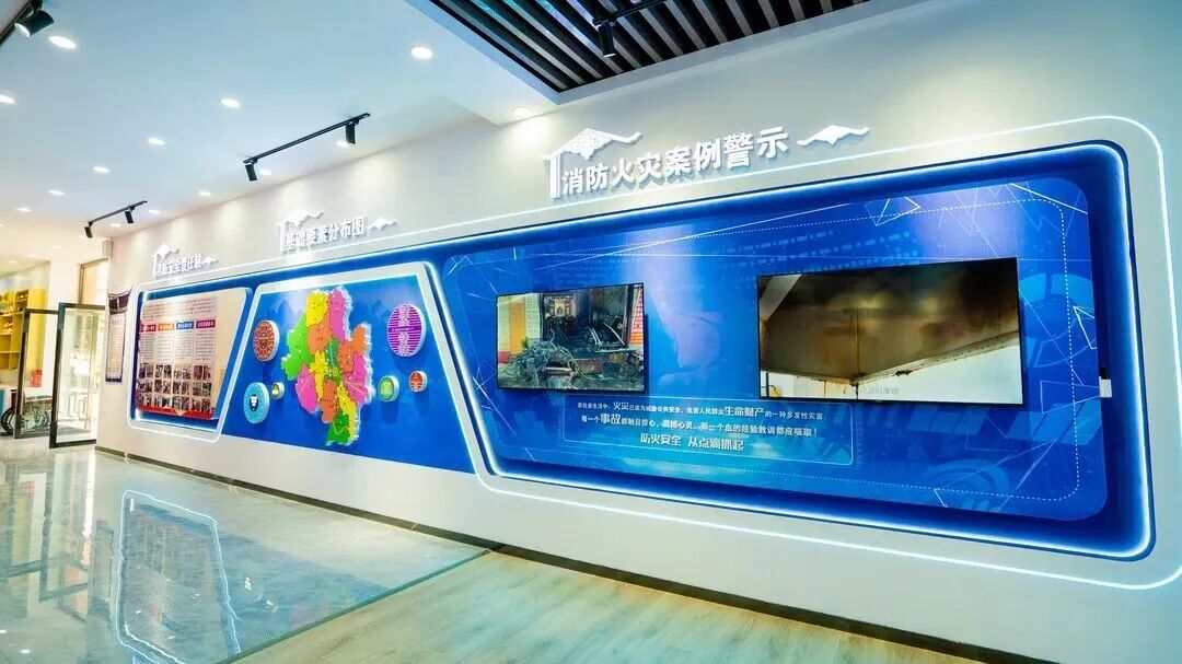 这里展示的是消防火灾案例警示部分,这两个电视是播放全国近期发生的各类火灾案例警示教育片,可以让大众更直观地了解火灾的危害以及防范措施,从而树立防范意识,预防火灾事故的发生。