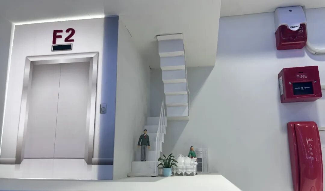 高层建筑发生火灾应该如何逃生?现场如何自救?建筑楼宇火灾自动报警联动演示系统就模拟了火灾发生时自动报警系统各部件的工作流程,以及建筑楼宇火灾中烟雾的走势,让大家能更直观地感受发生火灾时消防设施设备是如何运行的,并引导大家在身处火场时应采取低姿势、向下、不能乘坐电梯逃生。