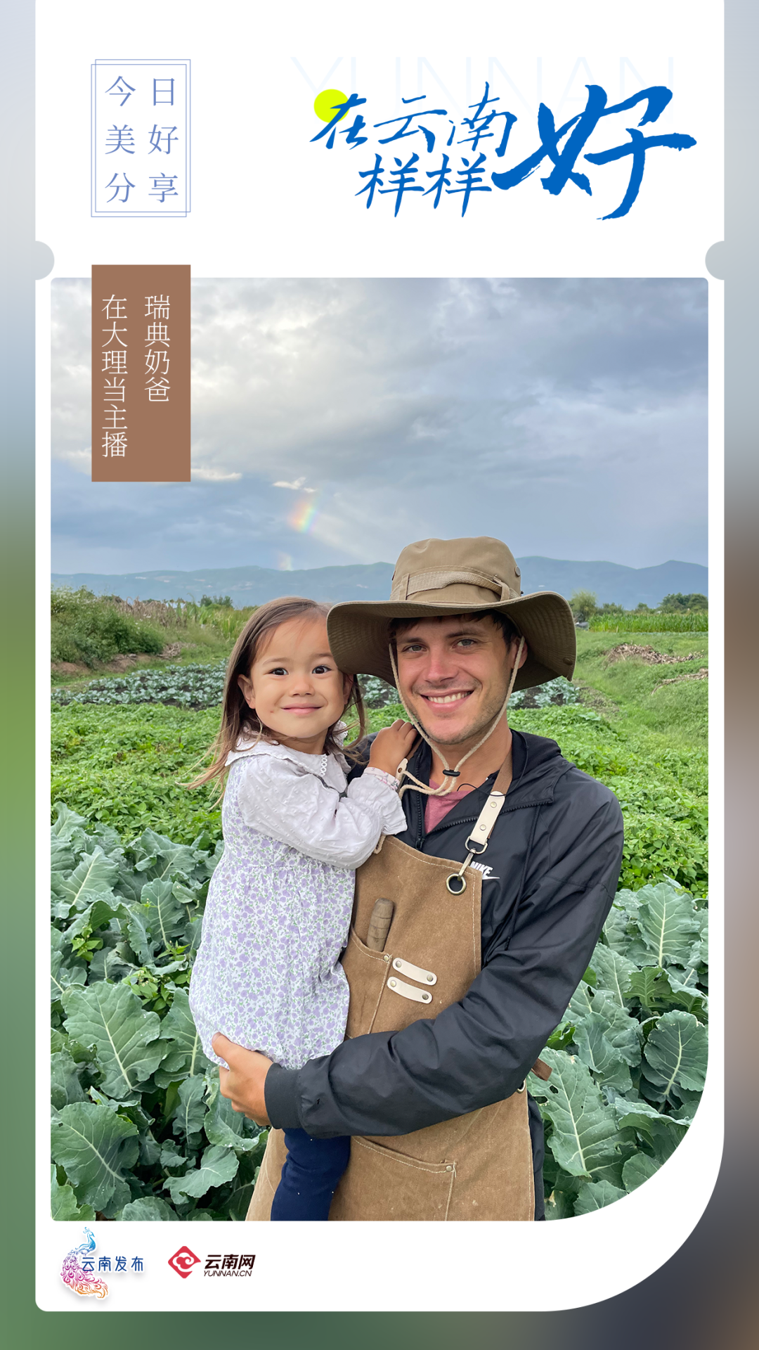 生于瑞典的奶爸Patrik(中文名陈派,以下文中都将使用中文名)从小就热爱大自然童年有关大自然的记忆让他无法忘怀陈派已在大理定居六年了“专业带娃,兼职种地”是陈派的媒体账号介绍在农场里种植有机蔬菜在直播间向大家介绍有机知识让大理当地种植的有机蔬菜拥有更多销售渠道让更多人吃上有机蔬菜陈派说这就是他想做的事、热衷的事陈派 大理州委宣传部 供图蓝天白云、苍山洱海大理的自然景色深深吸引着陈派在舒服的地方做着热爱的事情让陈派做回了自己他也一直用不一样的视角记录着大理传播当地的风土人情“大理的山和水就是我留在中国的理由一年四季每天都有它的美”对于陈派来说大理已然是自己的“新故乡”