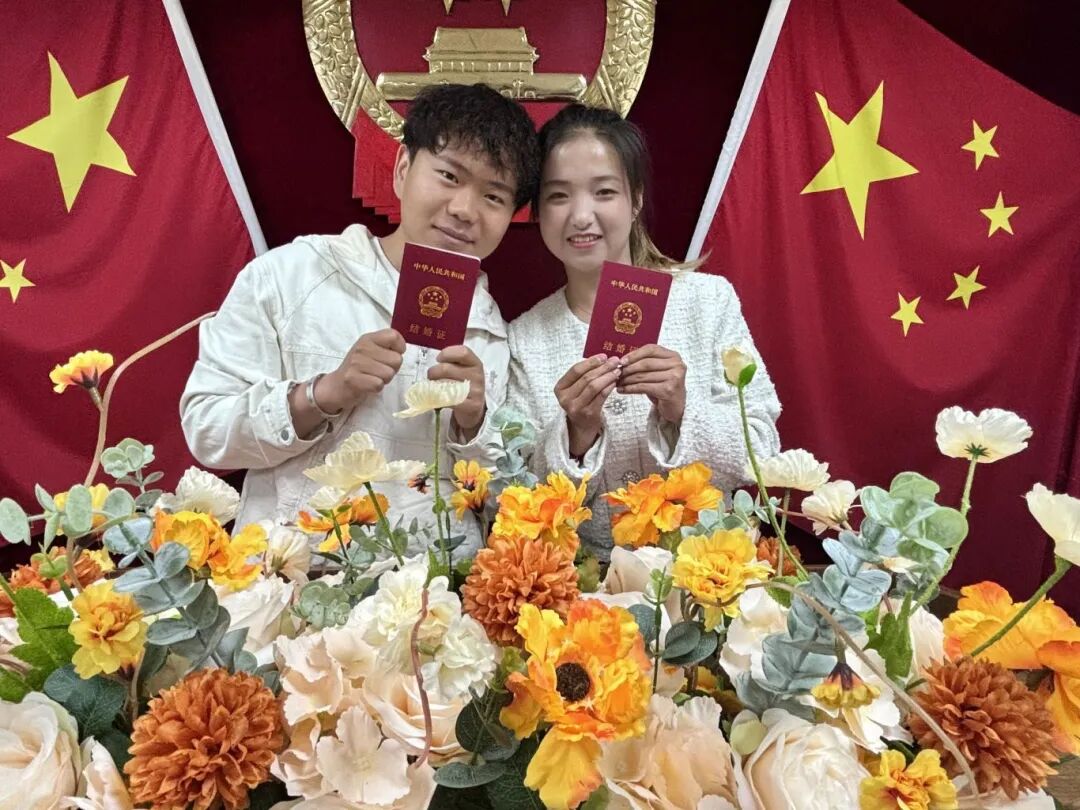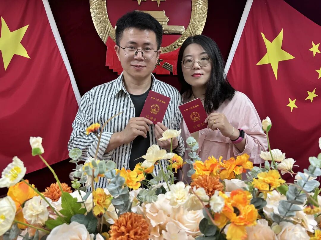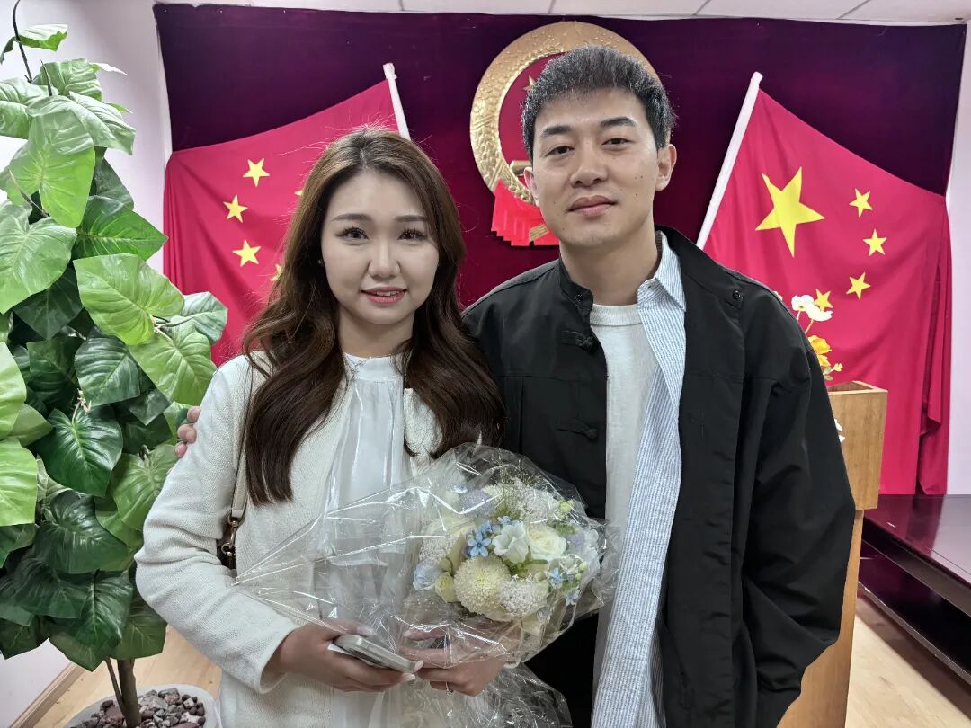 “今天是520,还是小满节气,寓意也比较好,所以我们来领证了。在今后的人生路上希望我们能互相珍惜。其实我有很多话在心里,想说,却说不出口,我会用行动向你证明一切。”——李先生