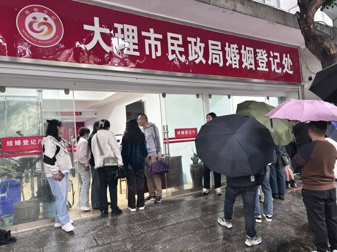 据了解,5月20日当天,大理市民政局婚姻登记处共办理婚姻登记89对。截至17:00时,全州共办理国内婚姻登记676对,涉外婚姻登记1对。