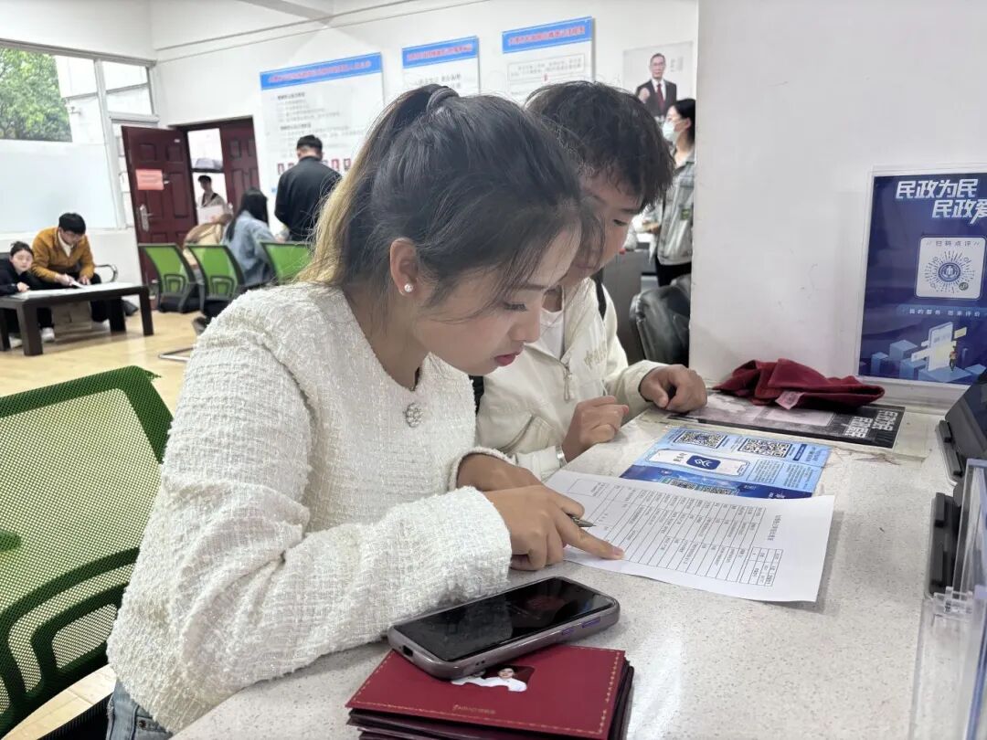 为满足各位新人的登记需求,我们于5月9日就已经在线上发布了公告,分别在线上和线下各开放了40对新人的名额,大概在5月15日左右,就已全部预约满了。当天80对新人办理完,如果又有新人来的话,我们还是会为他们办理的。