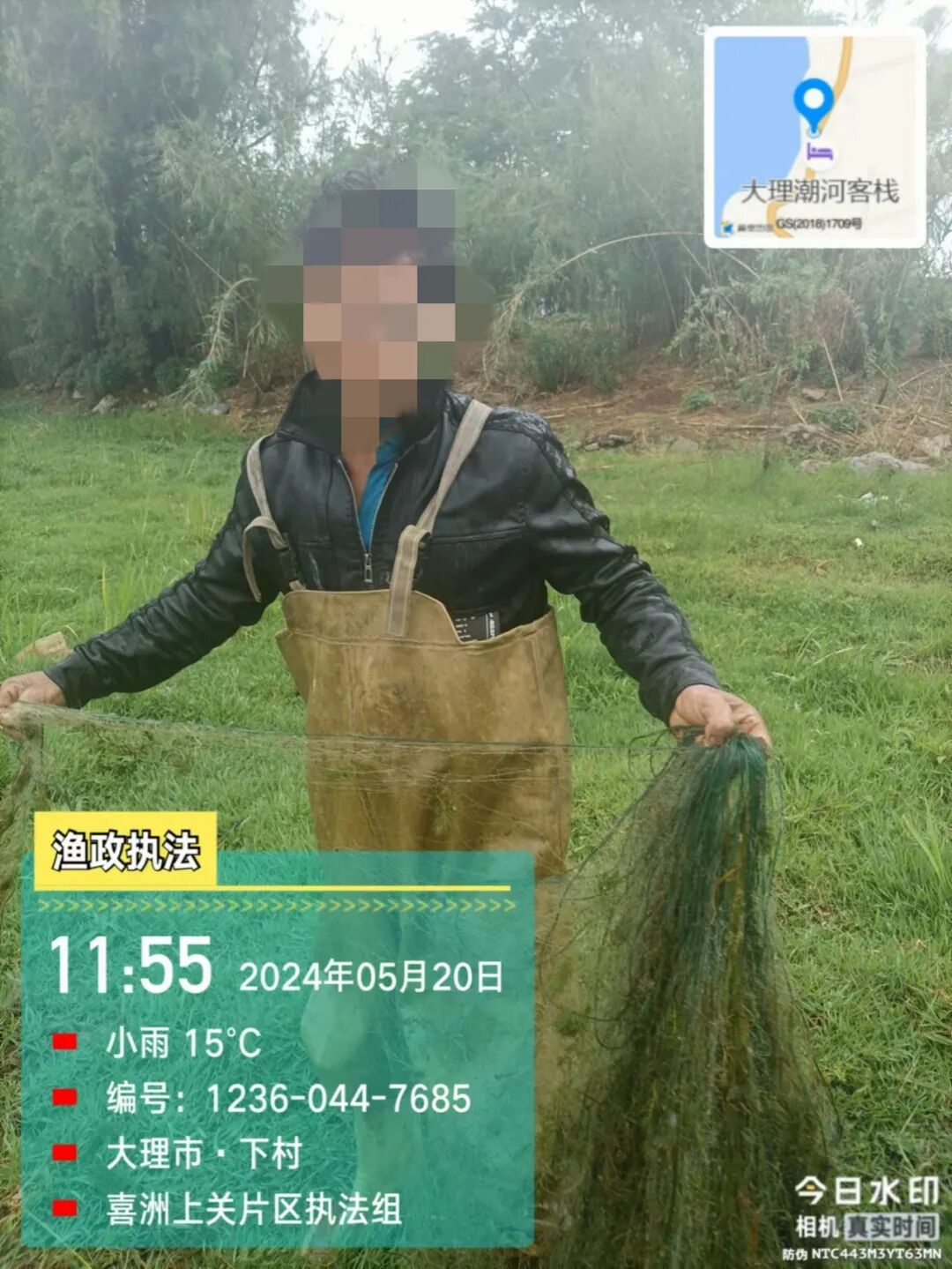 2024年5月19日12时45分许,大理市洱海流域综合联动执法大队在巡查过程中,现场查获当事人李某在喜洲镇下新生邑水泵站南侧洱海水域违法垂钓,执法人员依据《洱海保护管理条例》相关规定,对李某依法处以罚款的行政处罚。