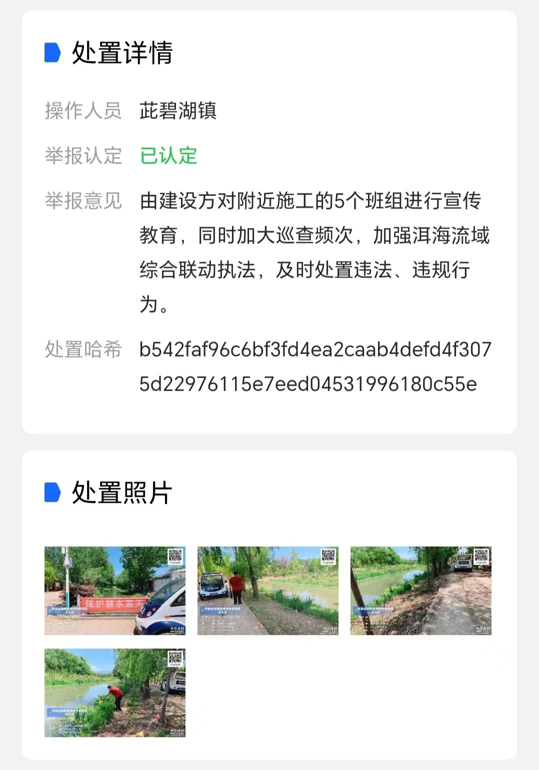 接到举报后,大理市洱海管理局第一时间通知大理市洱海流域综合联动执法大队,执法队在接到通知后,立即赶往现场核实情况。经核查,执法人员在赶往现场时,巡查的“洱海卫士”已经对当事人进行宣传教育并劝离。