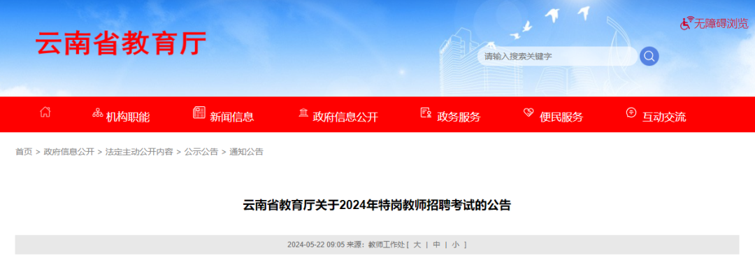 (三)云南省特岗教师招聘官方网站为云南省教育厅官网(jyt.yn.gov.cn)、云南省招考频道(www.ynzs.cn)以及各州(市)、县(市、区)公布的官方网站(见附表)。因查看其他渠道的错误信息造成的报考失误,由考生自行负责。