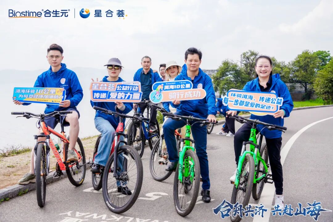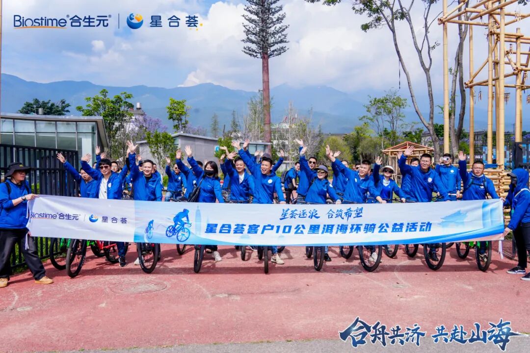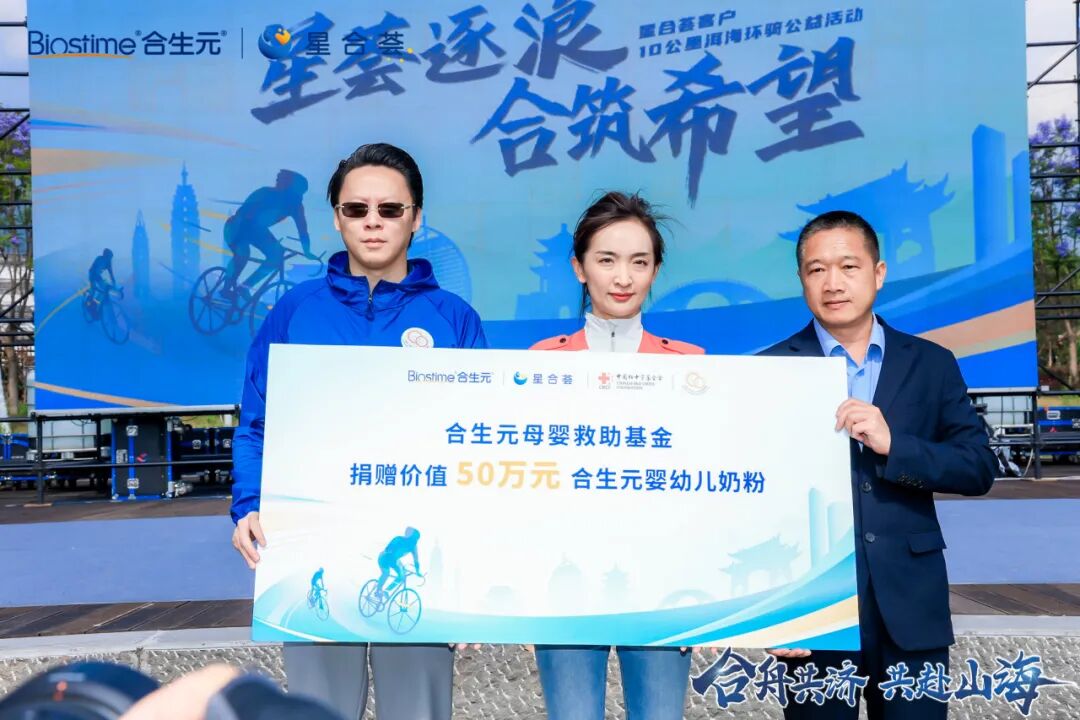 5月22日,合生元联合123家星合荟母婴渠道的伙伴,发起以“星荟逐浪,合筑希望”为主题的洱海环骑公益行动,通过公益行动向大理市太邑乡中心校捐赠价值50万的合生元奶粉,以企业力量助力更多有需要的母婴家庭健康成长。大理市红十字会常务副会长张静媛及健合集团合生元母婴救助基金办公室主任吴灿炫作为代表进行了捐赠仪式。同时,也为参与本次行动的123个星合荟母婴渠道伙伴颁发了爱心证书,以鼓励更多合作伙伴践行公益,回馈社会。