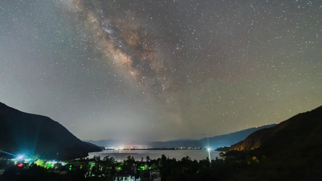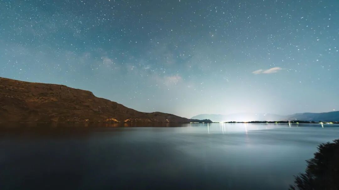 繁星璀璨,山水相映,静谧和谐,