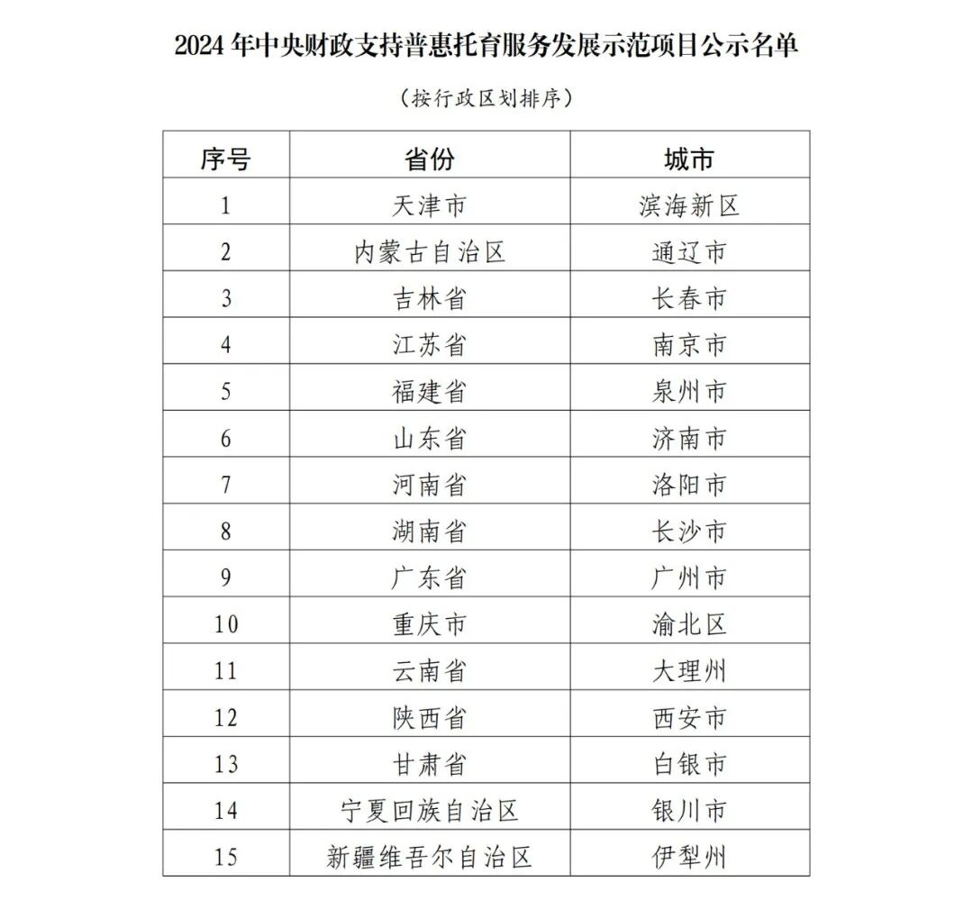 普惠托育服务发展示范项目