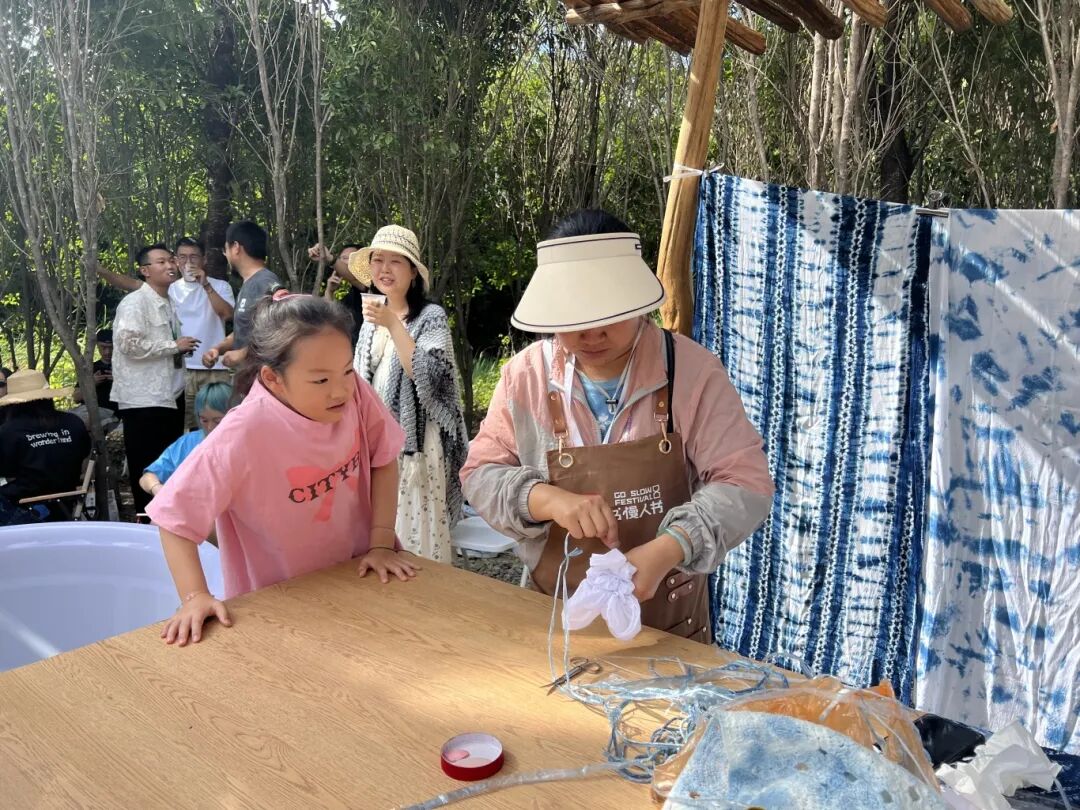 扎染是我们白族的非遗技艺,选择来这里,想着年轻人多,把我们的非遗更好的呈现给年轻人。我们扎染体验自己做,每个人的图案都不一样,感觉还是非常受年轻人的欢迎,用他们的话说就像“拆盲盒”,今天到16点,我已经接待了近50位客人,因为一直持续到晚上,天气凉爽一点应该还会有更多的人来体验。