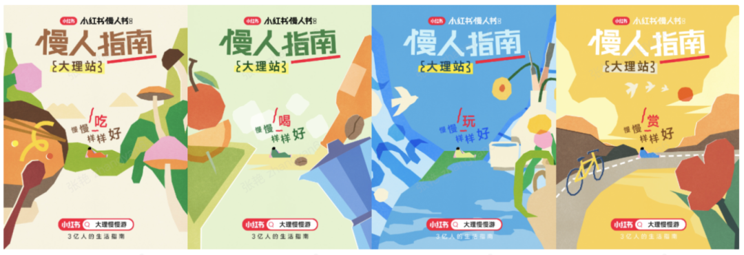 “小红书慢人节”还特别创建了「大理慢慢游」栏目,精选联动了大理当地的100+小店和景点,打造出了一本涵盖「吃.喝、玩、赏」四个象限的“慢人指南”,其中更是包含洱海生态廊道骑行以及苍山徒步等特别的路线,以此来扩散更多慢人的独特体验。