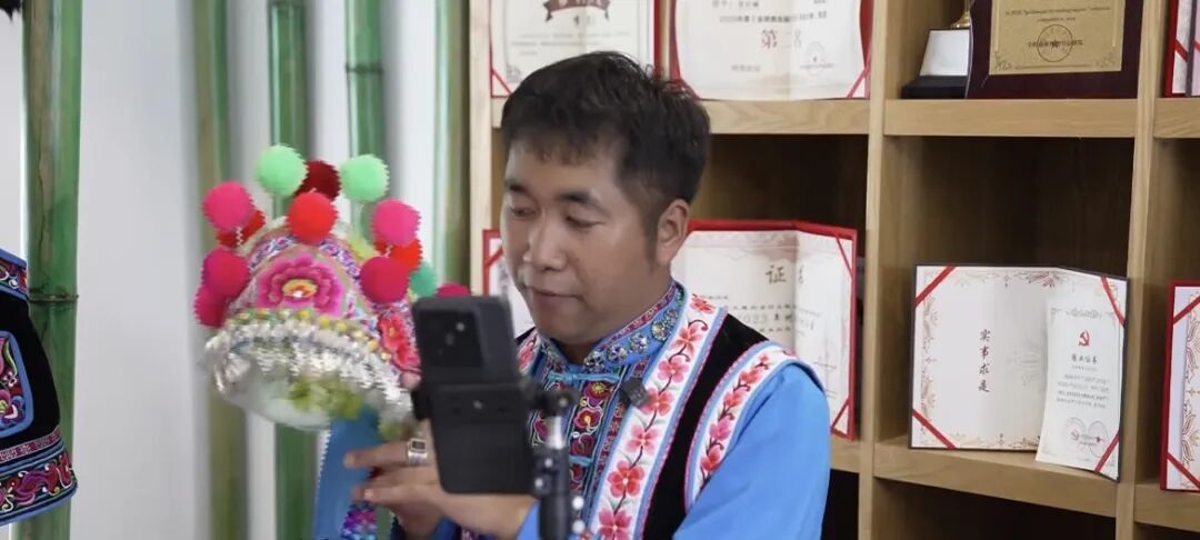 正在拍短视频的小伙叫张启诚,是一名00后彝族刺绣绣郎,他的出现不仅打破了彝绣传女不传男的传统,也让彝族刺绣这项非物质文化遗产的传承有了年轻人的视野。