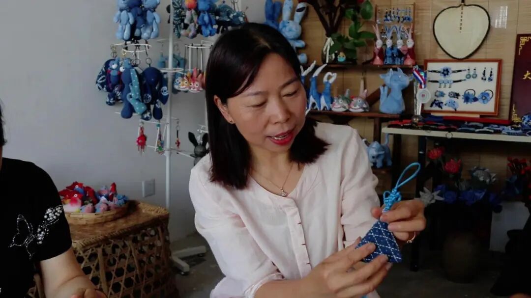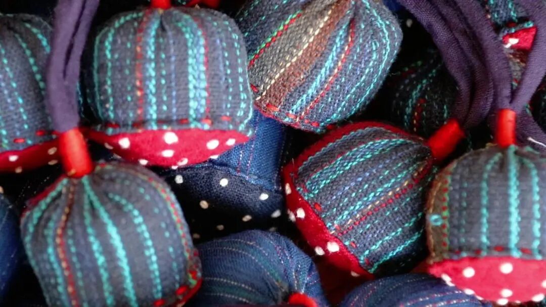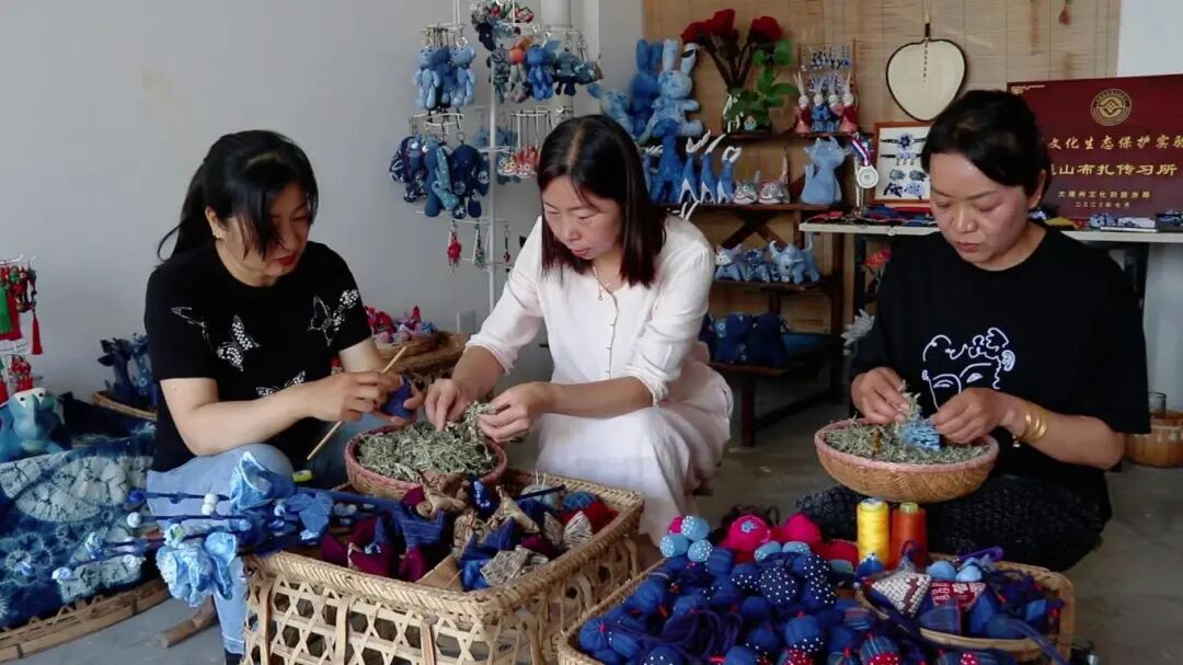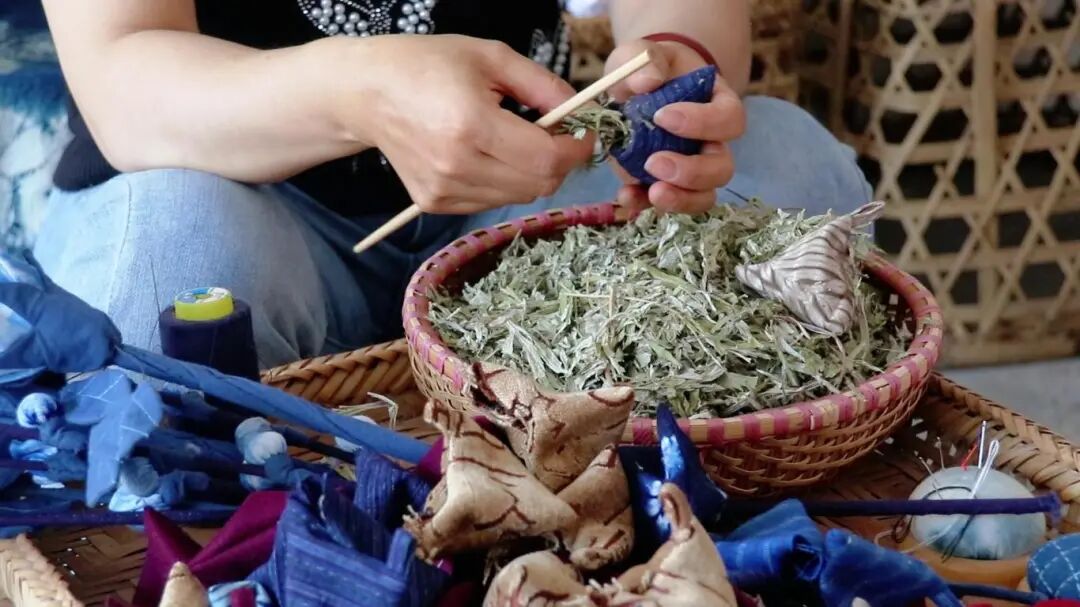 布扎香包是用扎染布、五彩丝线、艾草香料等材料,经过工人们的一双双巧手,巧妙地缝制出粽子、莲蓬等造型各异、缤纷多彩的非遗布扎香包,蕴含平安健康的美好祝愿,深受当地群众和外地游客的喜爱。