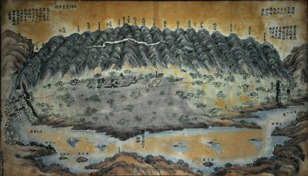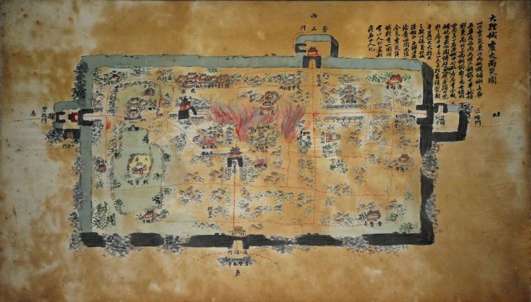 整幅图对大理城的布局,受灾点位做了详细描绘,再加上是彩色描绘,将地震发生后城内的情况客观准确地做了记载。