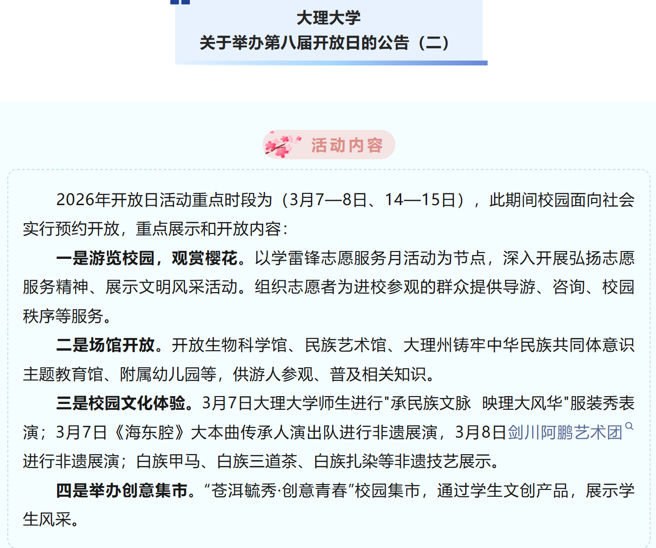 今天16:00开抢!看樱花、赏非遗、逛集市!大理大学开放日这样预约→