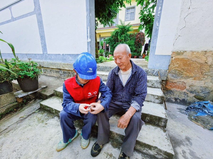 服务间隙,志愿者与老人围坐交流,帮忙修理小物件,温馨互动让这次守护既专业又充满亲情般的温度。一次检修,一句乡音,一次陪伴,南网青年正用实际行动,让深山里的夕阳更暖。