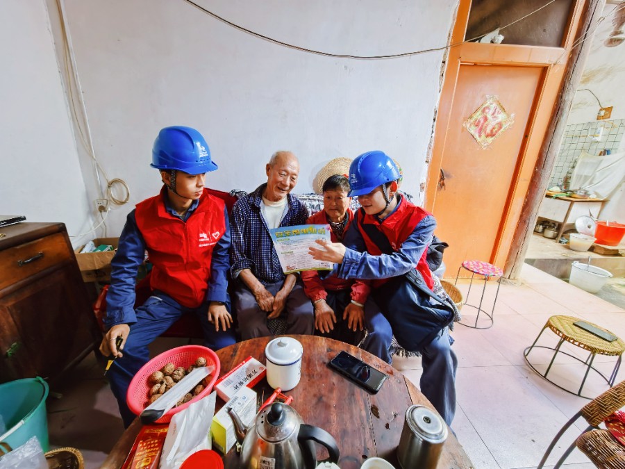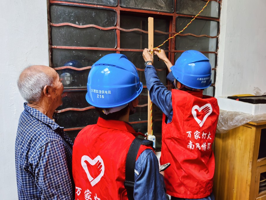 近日,南方电网云南大理弥渡供电局的青年志愿者们来到县城40多公里外的直苴村,为空巢老人提供上门用电服务。他们仔细检查每户的线路开关,更换老化设备,还用当地方言耐心讲解安全知识。