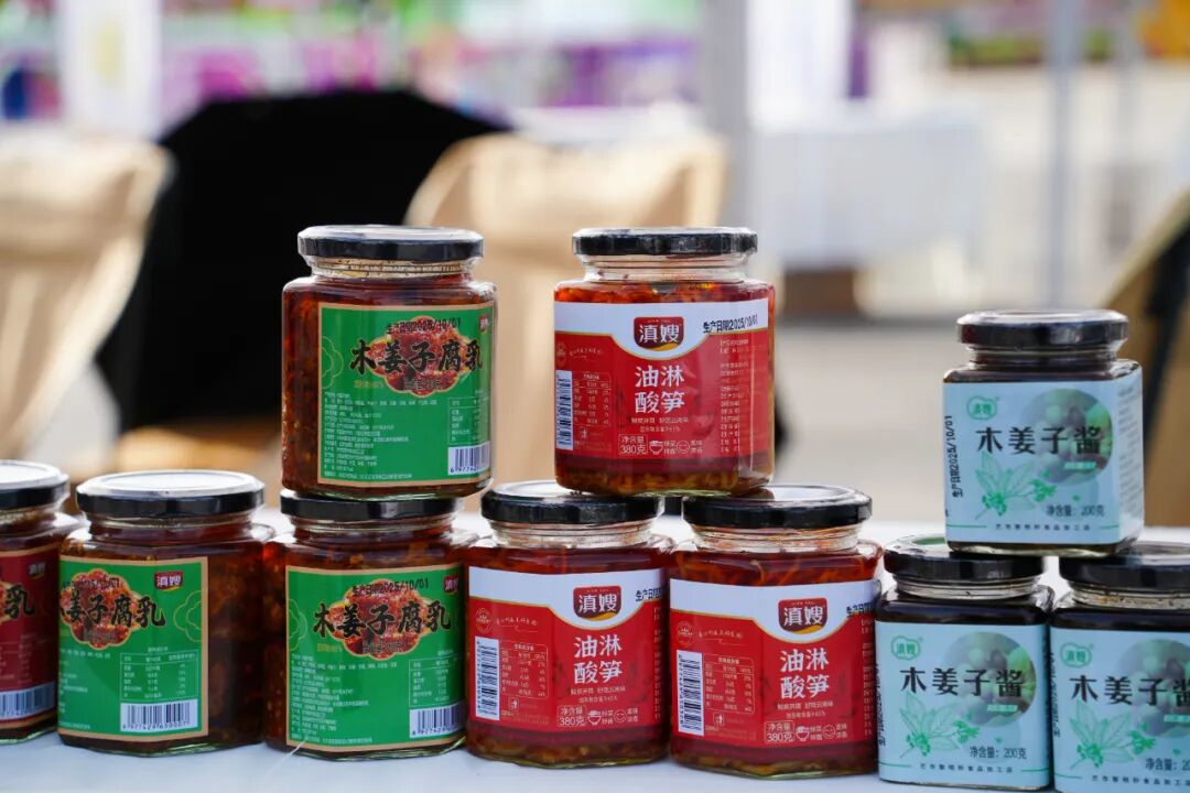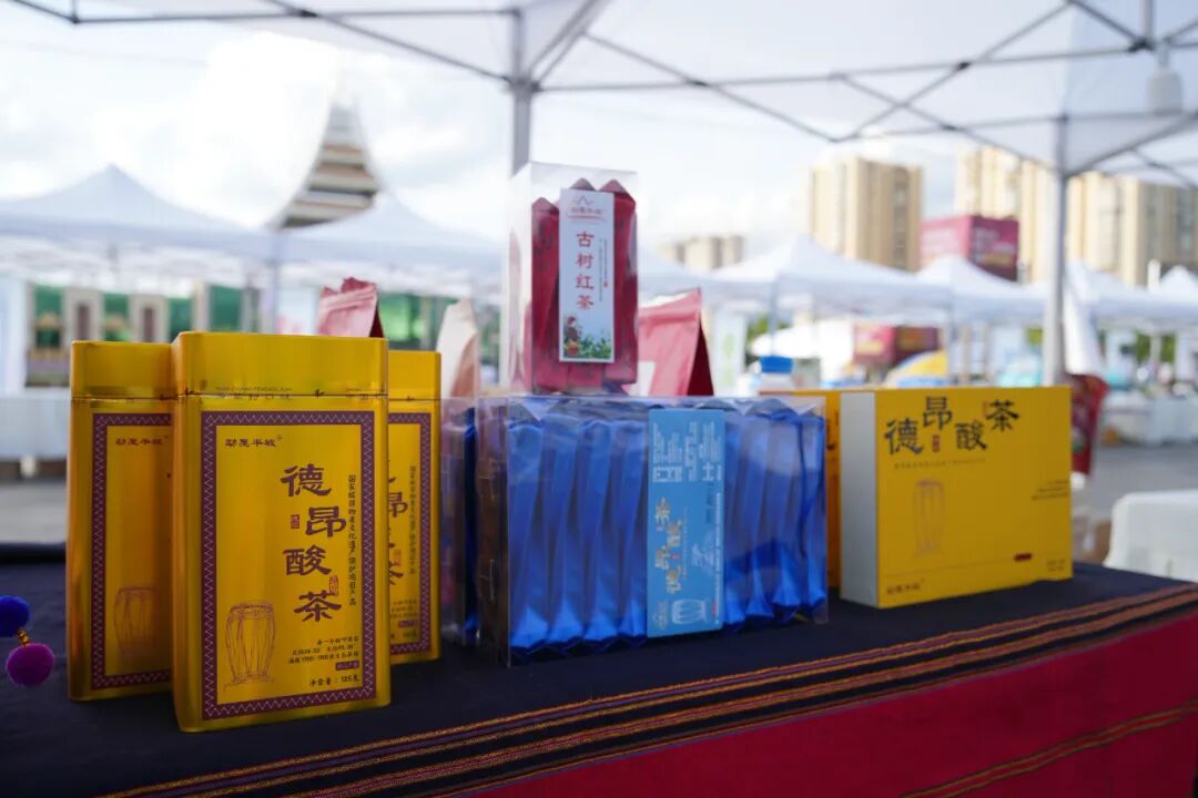 赛场周边布置了芒市特色产品展销区域,吸引选手驻足了解和购买。