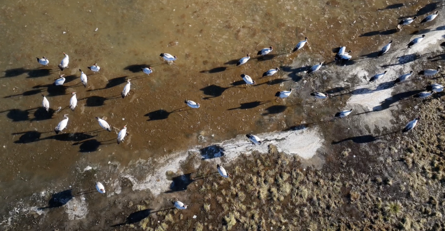 觅食的黑颈鹤(视频截图)