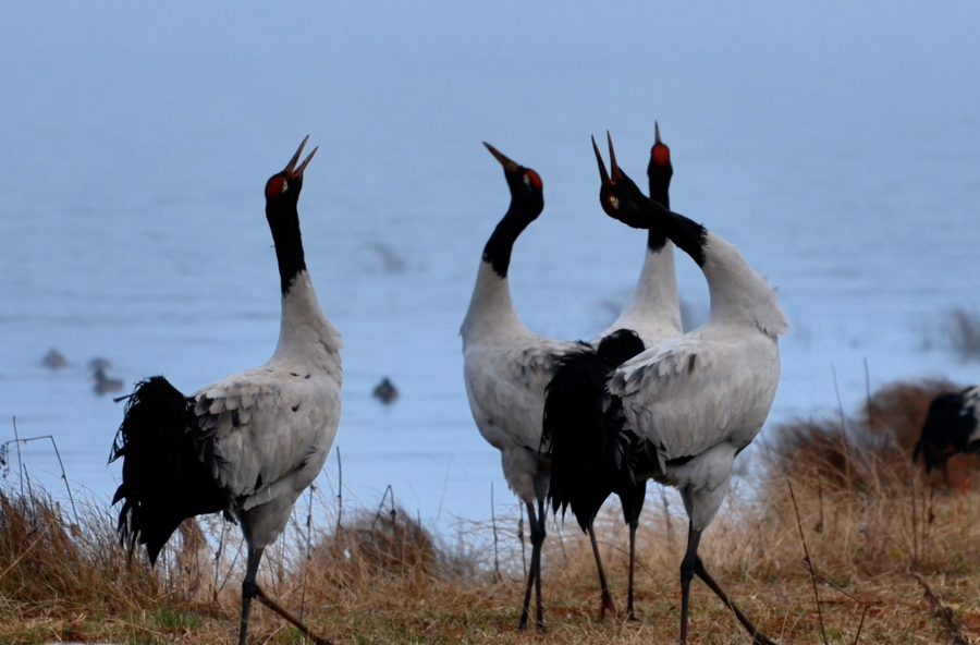 鸣叫的黑颈鹤(视频截图)