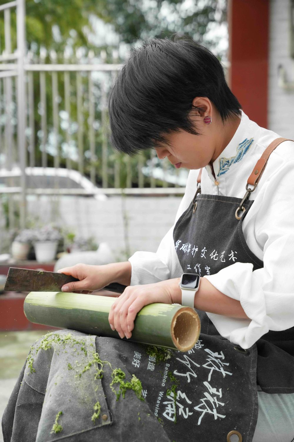 在竹林和院坝,忘却烦恼的刘罗琳享受匠人角色,找到与自然、与自己对话的感觉:“当手指在编织,心就在说话。”
