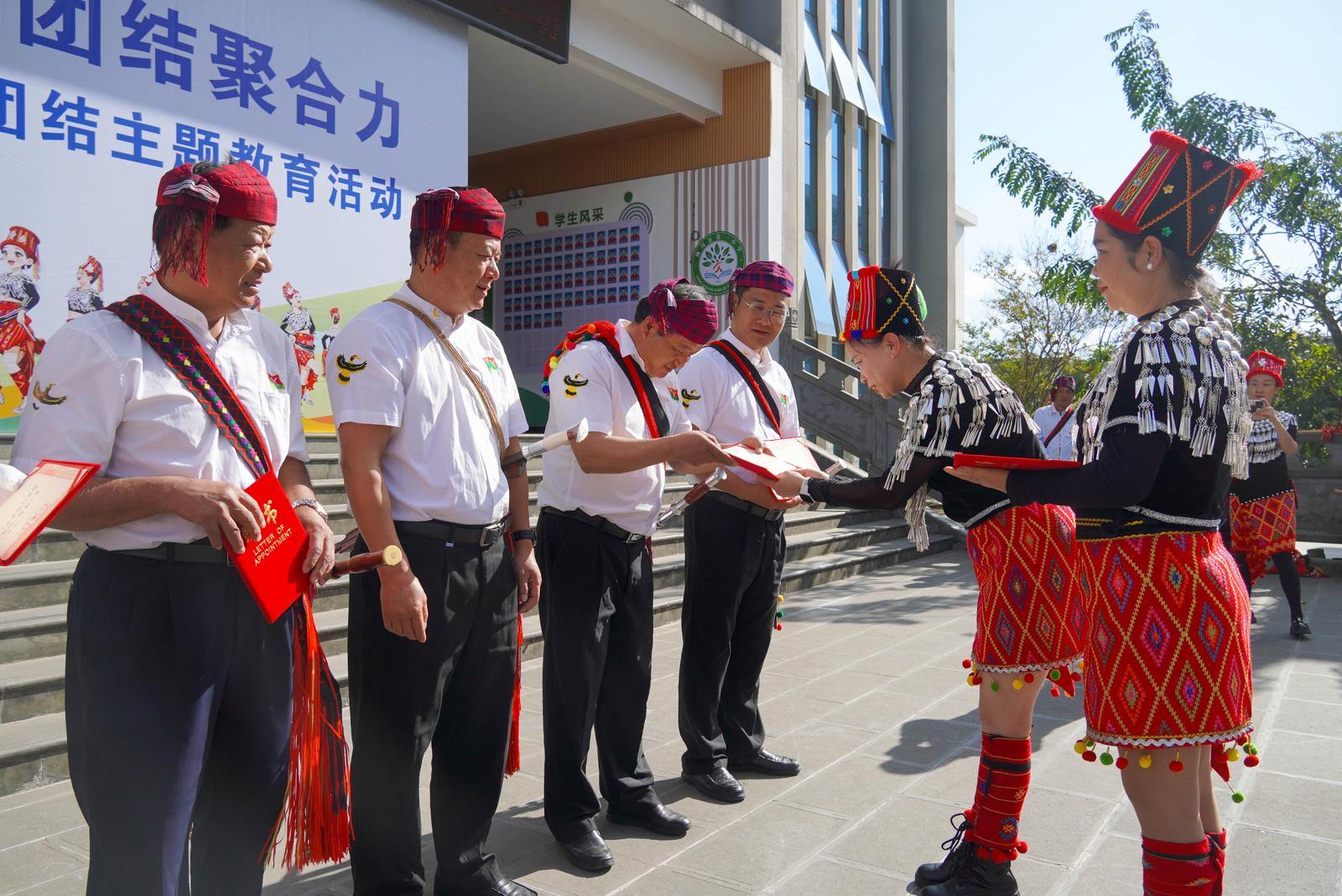 理论宣讲后,非遗代表性传承人开展目瑙纵歌集中培训,手把手指导师生掌握基本舞步与配合技巧。活动全程有序推进,充分保障师生参与安全与活动质量。活动还举行聘书颁发仪式,校领导为传承人颁发聘书,聘请其担任校园非遗文化导师。